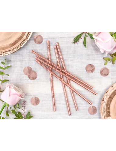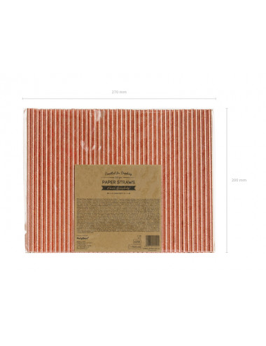 Słomki papierowe w kolorze różowego złota, długość ok. 19.5 cm. Towar nie może być sprzedawany na terytorium RFN, w związku z wewnętrznymi regulacjami prawnymi Niemiec. Towar zgodny z przepisami Unii Europejskiej.