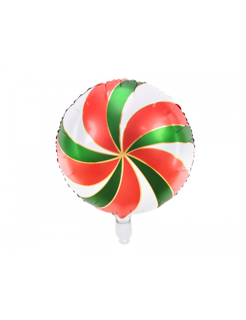 Matowy balon foliowy Cukierek w białym kolorze z kolorowym nadrukiem, średnica przed napompowaniem ok. 45 cm (18''), średnica po napompowaniu ok. 35 cm (14''). Do napomowania powietrzem i helem.