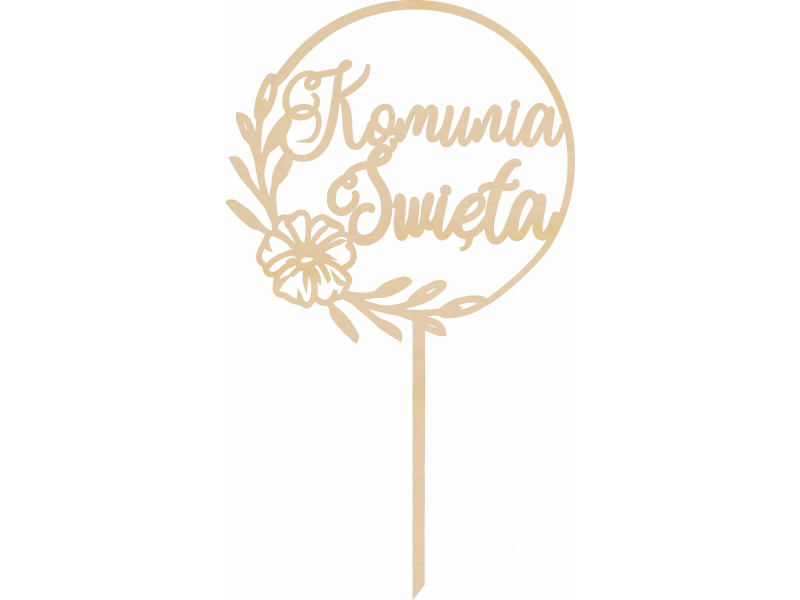 Topper złota plexi lustro I Komunia Święta kwiat personalizowany
