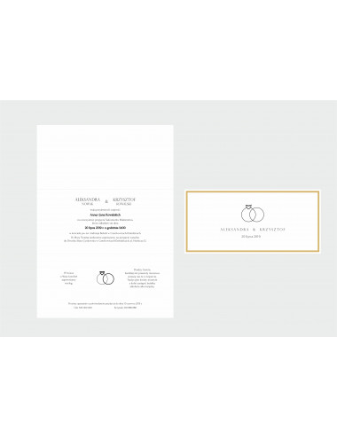 Jeśli masz ochotę wymienić kolor papieru, czcionkę lub dodać inny element - daj znać :) Da się zrobić :) Takie zaproszenie wykonywałyśmy także używając zamiast białego matowego papieru - papier biały perłowy, wymieniłyśmy złote lustro na papiery takie jak złoty perłowy czy srebrne lustro.