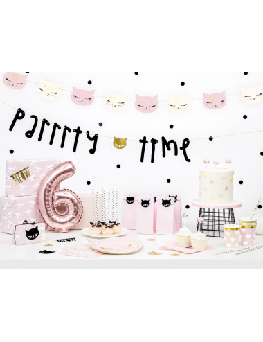 Girlanda Kotek, mix wzorów i kolorów, do samodzielnego złożenia, zestaw zawiera 8 kotków i ok. 3 m złotego sznurka, wymiary po złożeniu: wysokość ok. 8,5 cm, długość ok. 1,4 m.